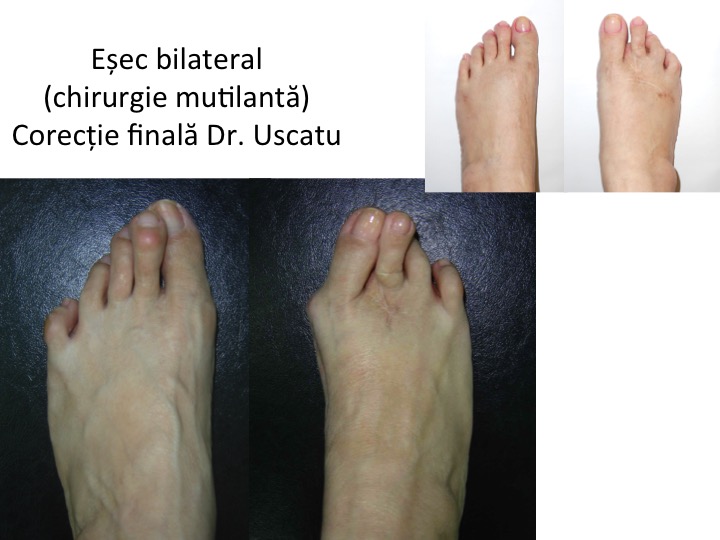 - corectia bilaterala (operarea ambelor picioare in aceeasi zi) este tehnic-chirurgical posibila, insa este grevata de o durere apreciabila, de dificultati majore de deplasare, precum si de un risc enorm de complicatii si recidive.