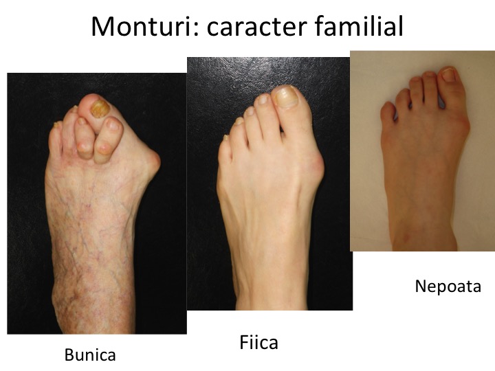 - exista insa un istoric " familial" al monturilor (hallux valgus): deformatia se regaseste deseori la membrii aceleiasi familii;